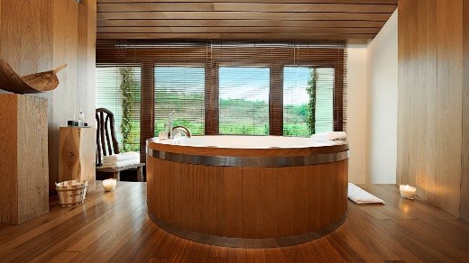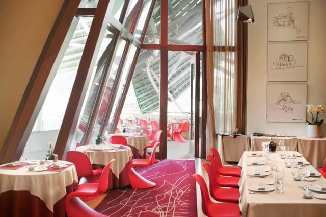 together in the hotel’s luxurious vino-therapy spa. Following a fifty minute facial treatment in a private room, enjoy a bubbly barrel bath together, complete Marqués de Riscal Restaurantwith exfoliating grape marc. This ultra-romantic moment will leave you both feeling fresh and exhilarated. Your afternoon of pampering will be concluded with a Caudalie massage for two: duo divine!